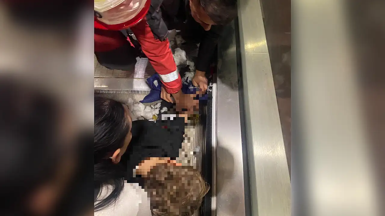 5 yaşındaki çocuk yürüyen merdivende elini sıkıştırdı