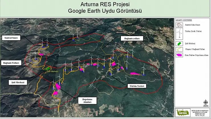 Arturna RES Projesi; Bodrum ve Milas ilçeleri ile Mazı, Demirciler ve Gökpınar mahalleleri sınırları içerisinde yer alıyor. Proje kapsamında toplam 23 adet rüzgâr türbini kurulması planlanırken, santralin toplam kurulu gücü 96,6 MWm / 90,4 MWe olarak belirlendi.