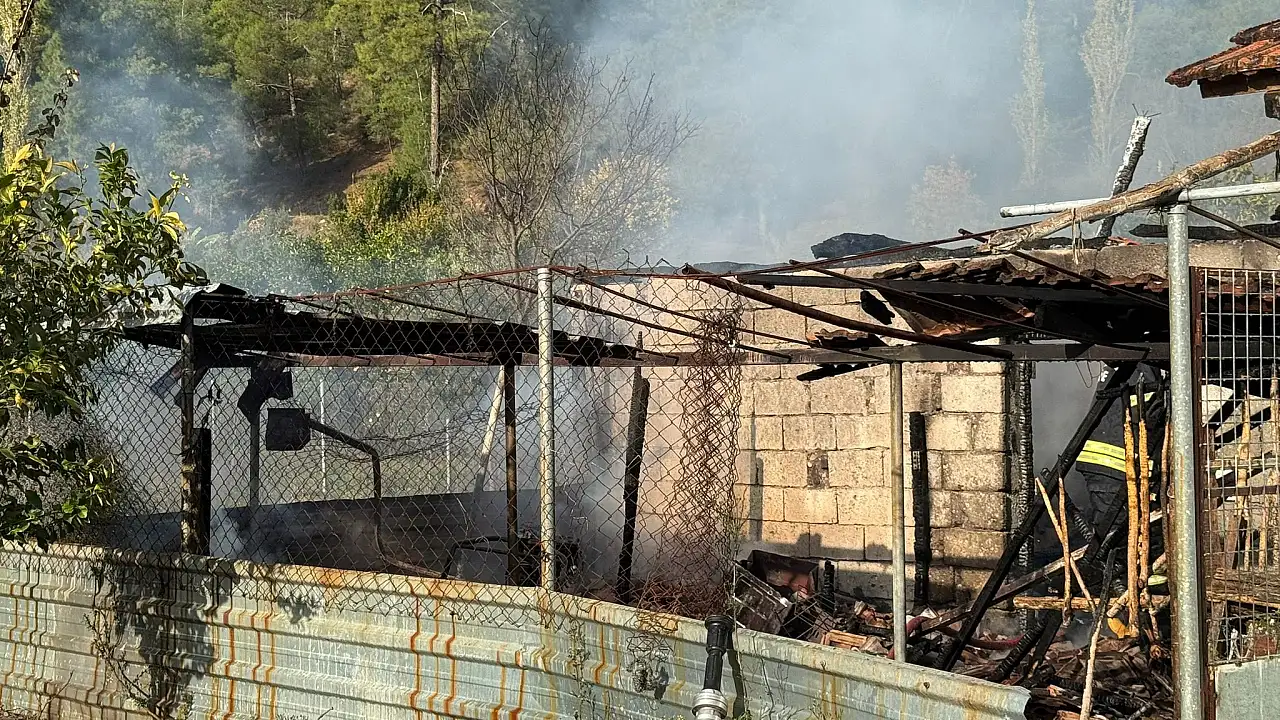 Bir ahırda çıkan yangın, tamamen küle dönerken bitişikteki evin bir bölümü de zarar gördü.