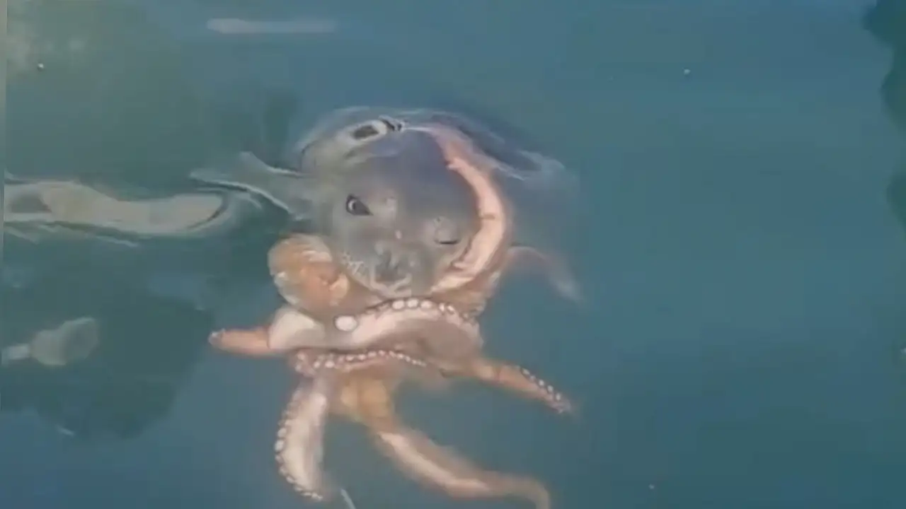 Akdeniz fokunun ahtapot avı kameralara yansıdı