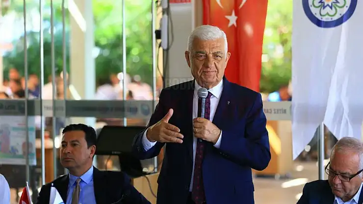 Muhtarlar toplantısında konuşan Muğla Büyükşehir Belediye Başkanı Dr.