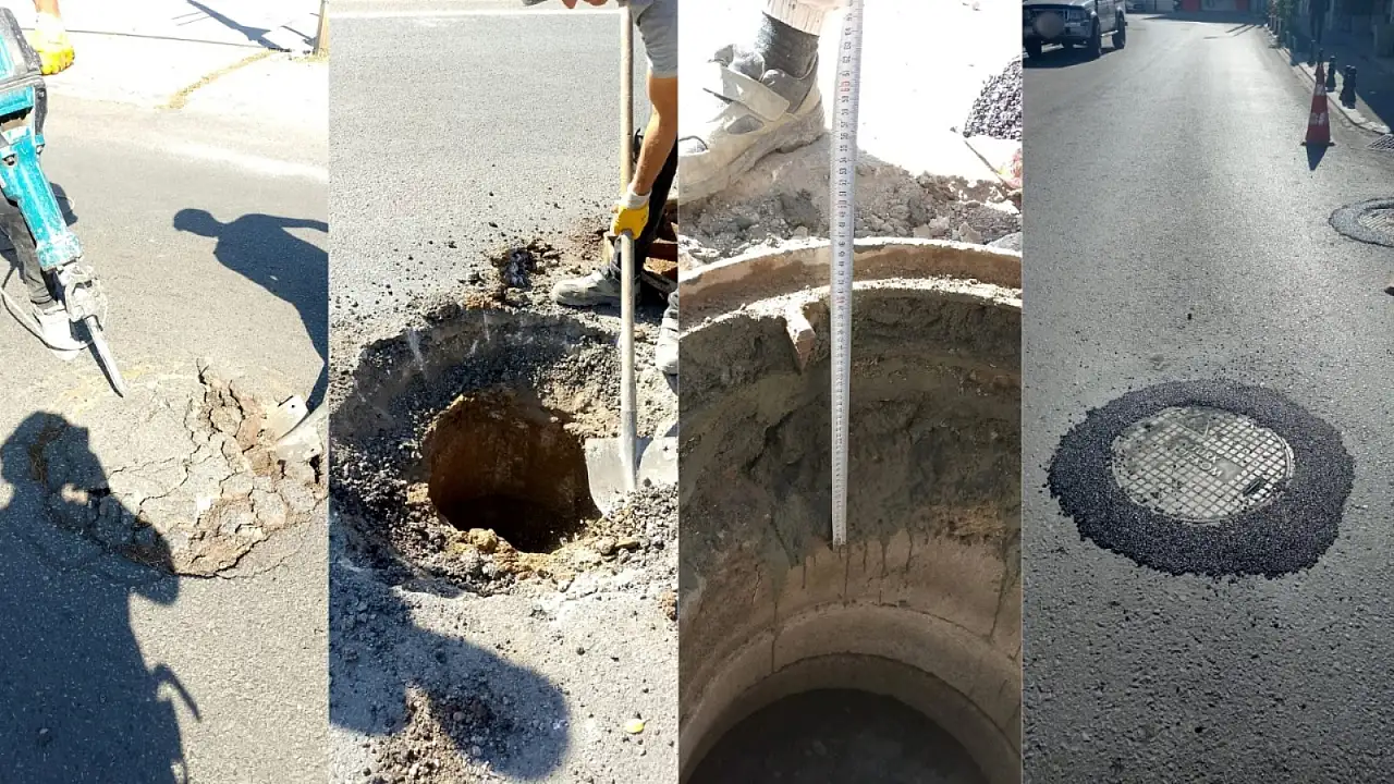 belediye ekipkerinden yollardaki bacalarda yükseltme çalışmaları