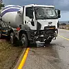 Beton mikseri kaygan yolda kontrolden çıktı