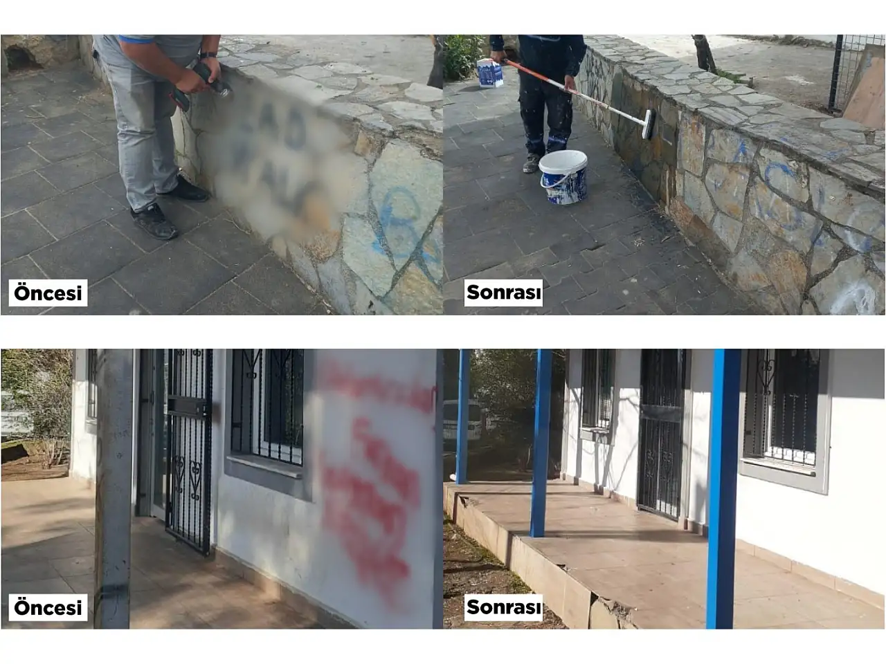 İlçe genelindeki park, duvar, kamu binaları gibi alanlara yapılan resimler, yazılar, karalamalar ve boyamalar belediye ekipleri tarafından temizleniyor. Yeniden boyanarak düzenli bir görünüme kavuşturulan alanlar kent estetiğine uygun hale getiriliyor. Çalışmalar kapsamında son 6 ay içerisinde 29 duvar yazısı silindi.