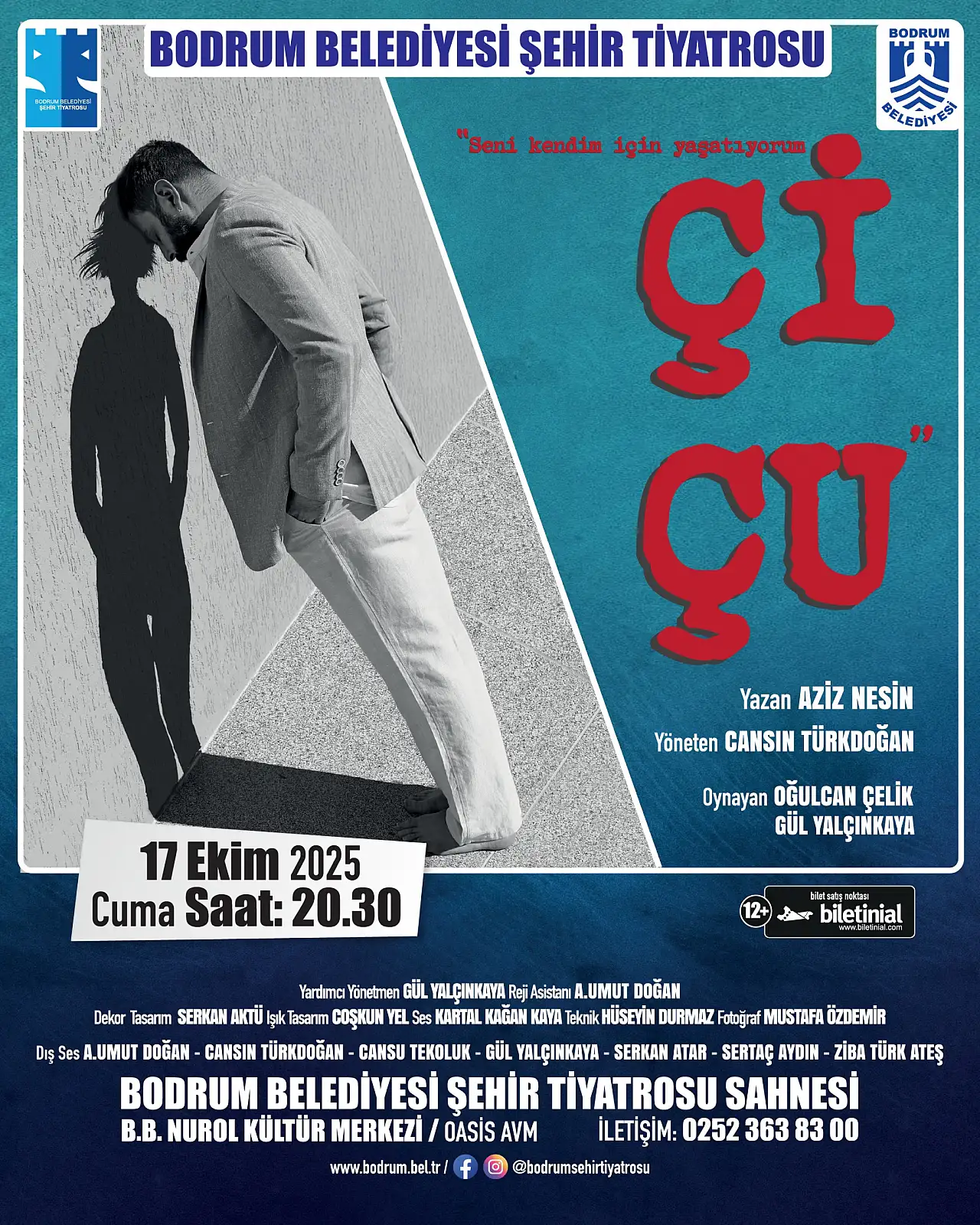 Yaz sezonu boyunca yoğun bir prova süreci geçiren Bodrum Belediyesi Şehir Tiyatrosu, yeni sezonda seyircisiyle buluşmaya hazır.Sezonun ilk oyunu, 17 Ekim Cuma günü sahnelenecek. Oyunlar her cuma akşamı saat 20.30'da tiyatroseverlerle buluşmaya devam edecek. Geçtiğimiz sezon mart ayında sahnelenmeye başlanan, Aziz Nesin'in yazdığı, Cansın Türkdoğan'ın yönettiği ve Oğulcan Çelik ile Gül Yalçınkaya'nın rol aldığı “Çiçu” oyunu, 17 Ekim Cuma günü saat 20.30'da sezonun açılışını yapacak.