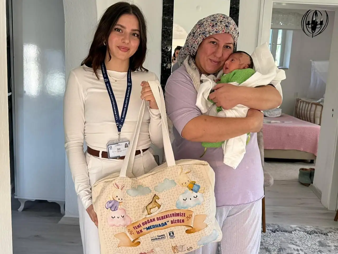 Bodrum Belediyesi tarafından yürütülen "Hoş Geldin Bebek" projesi kapsamında gerçekleştirilen ziyarette, aileye Bodrum Belediye Başkanı Tamer Mandalinci adına tebrikler iletildi.