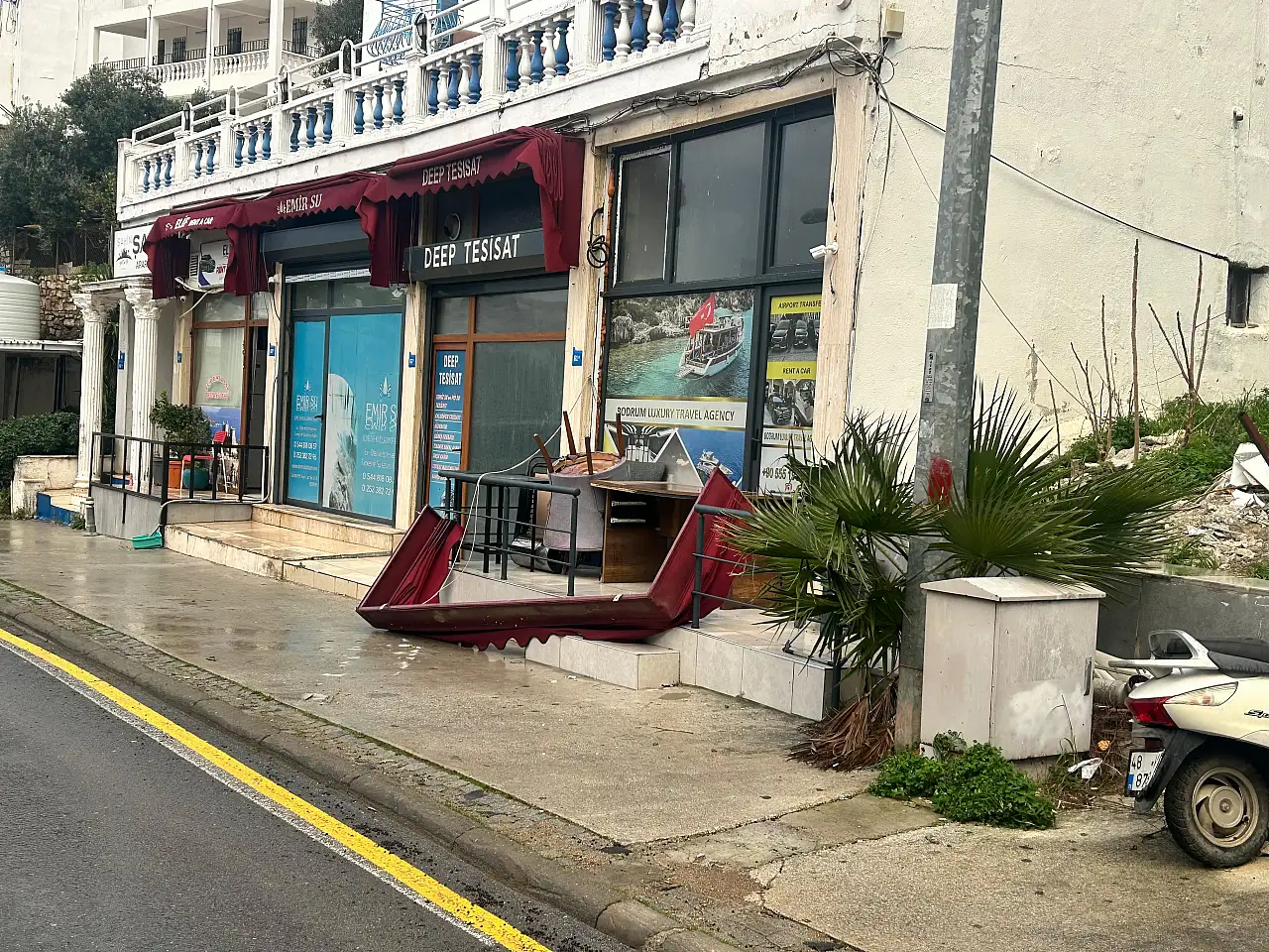 Meteoroloji’nin Bodrum için yaptığı fırtına uyarısının ardından ilçenin farklı noktalarında olumsuzluklar meydana geldi. Şiddetli rüzgârın etkisiyle günlük yaşamda aksaklıklar yaşandığı gözlendi.