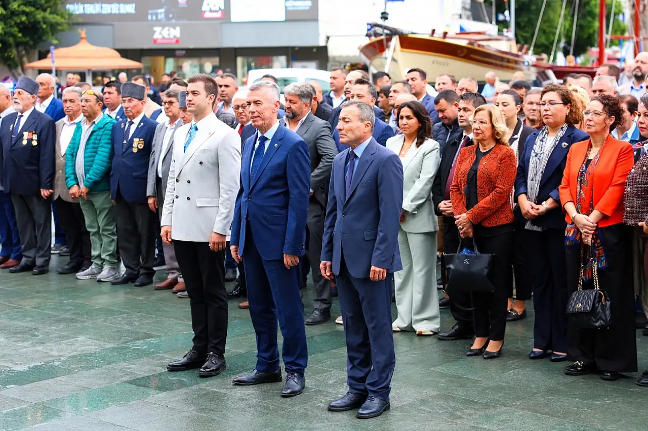 19 Ekim Muhtarlar Günü dolayısıyla Bodrum Belediye Meydanı'nda tören düzenlendi. Program, Atatürk Anıtı'na çelenk sunulmasıyla başladı.