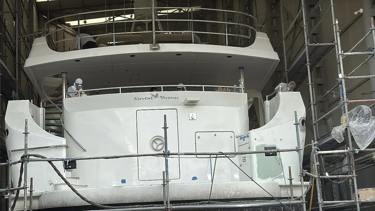 Daha sonra bakımı tamamlanan teknelerin inmesini bekleyip, çıkmasını beklediğimiz tekneler olacak. Tekne boyutları her sene büyüyor. 450-500 ton çekme kapasitesi ile 55 metrelik yatlara kadar hizmet yapabiliyoruz.