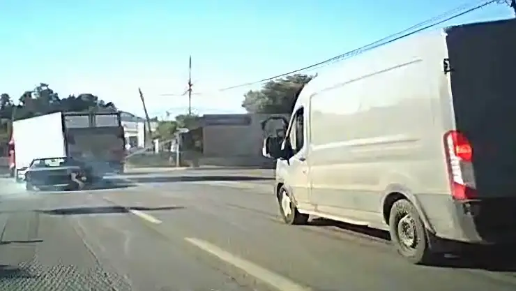 Üç aracın karıştığı kazada can kaybı ya da yaralanma yaşanmazken, araçlarda maddi hasar meydana geldi. Kaza anı ise başka bir araçta bulunan güvenlik kamerasına saniye saniye yansıdı.