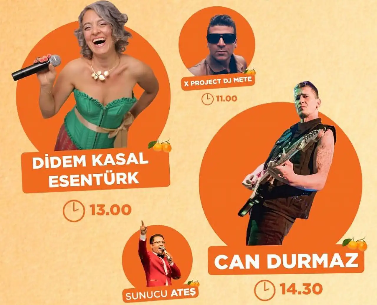 Gün boyunca devam edecek Bodrum Mandalin Festivali, hasat şenliği ve kortejle başlayacak. Festivalde halk oyunları gösterileri, mandalin temalı ikramlar ve satış stantlarının yanı sıra çocuklara özel aktiviteler de yer alacak. Mandalinli tatlar yarışması, DJ performansı ve Didem Kasal Esentürk, Can Durmaz ile Yol Project konserleriyle festival, katılımcılara unutulmaz bir gün yaşatacak.