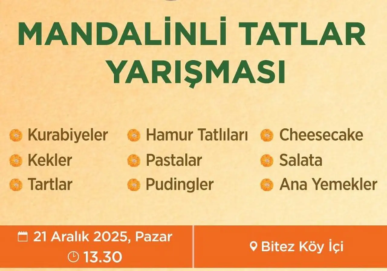 Bodrum Belediyesi, Bodrum Mandalin Hareketi ve Bitez Mahalle Muhtarlığı organizasyonuyla Muğla Büyükşehir Belediyesi, Bodrum Kaymakamlığı, İlçe Tarım Müdürlüğü, BODTO, BİTAV, BOTAV, BODER, BESİAD ve Bodrum Yalıkavak Lions Kulübü iş birliğinde, bu yıl 18'incisi düzenlenecek olan Bodrum Mandalin Festivali, 21 Aralık Pazar günü Bitez Köy İçi'nde gerçekleşecek.