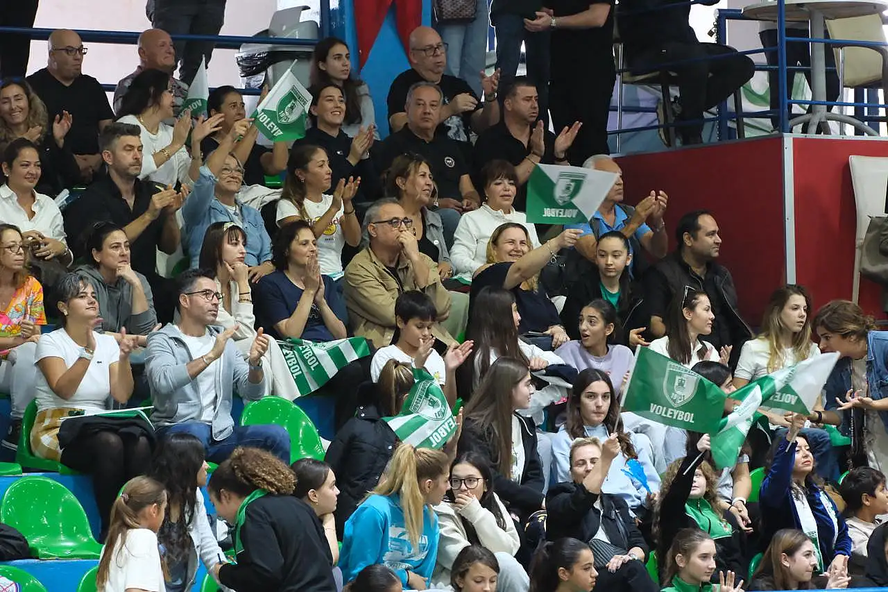 İkinci sete de iyi bir oyunla başlayan yeşil-beyazlı ekip, mücadeleci ve hırslı oyunuyla seti 25-12 önde tamamladı (1-1).