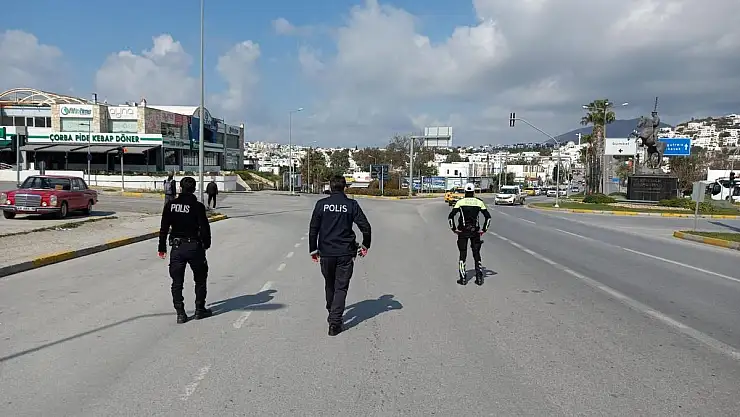 Cumhurbaşanlığı'ının kararnamesi ile covid-19 kapsamında, haftasonu cumartesi ve pazar sokağa çıkma yasağında polis ekipleri Bodrum'da denetimleri arttırdı.