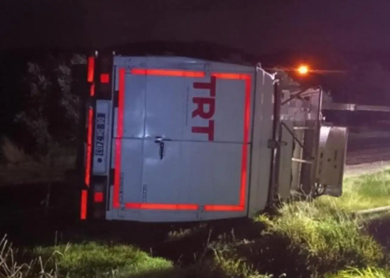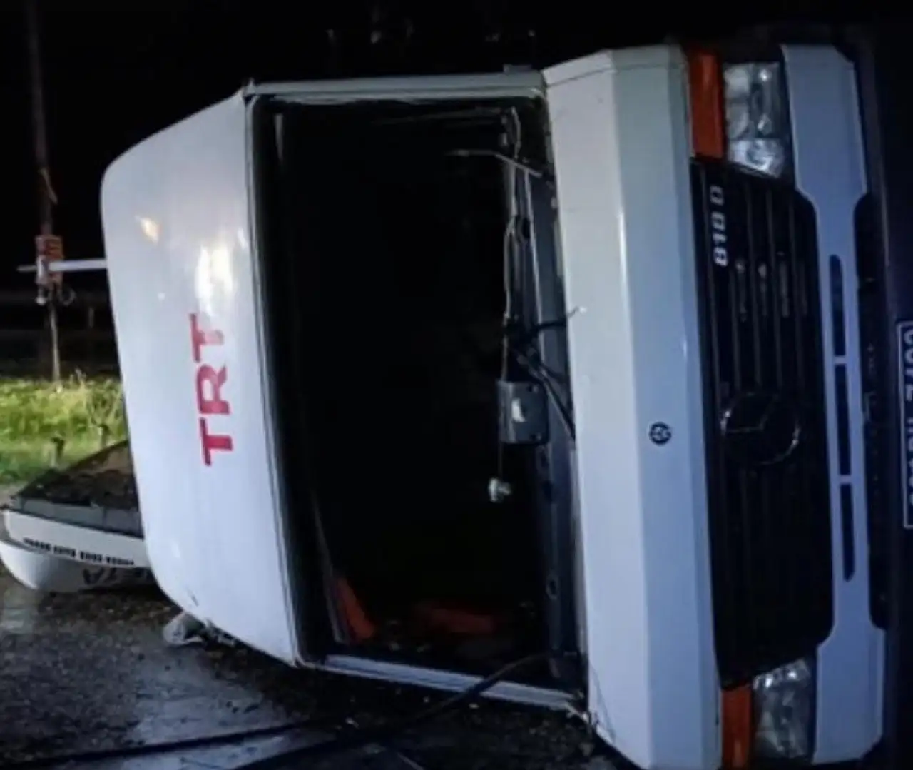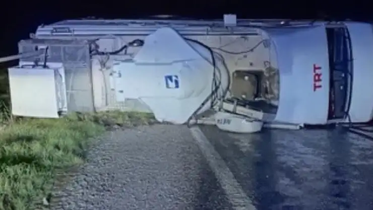 Canlı yayın için dizayn edilmiş resmi plakalı minibüs, Söke–Milas karayolunda kontrolden çıkarak orta refüje çıktıktan sonra yan yatarak durabildi.