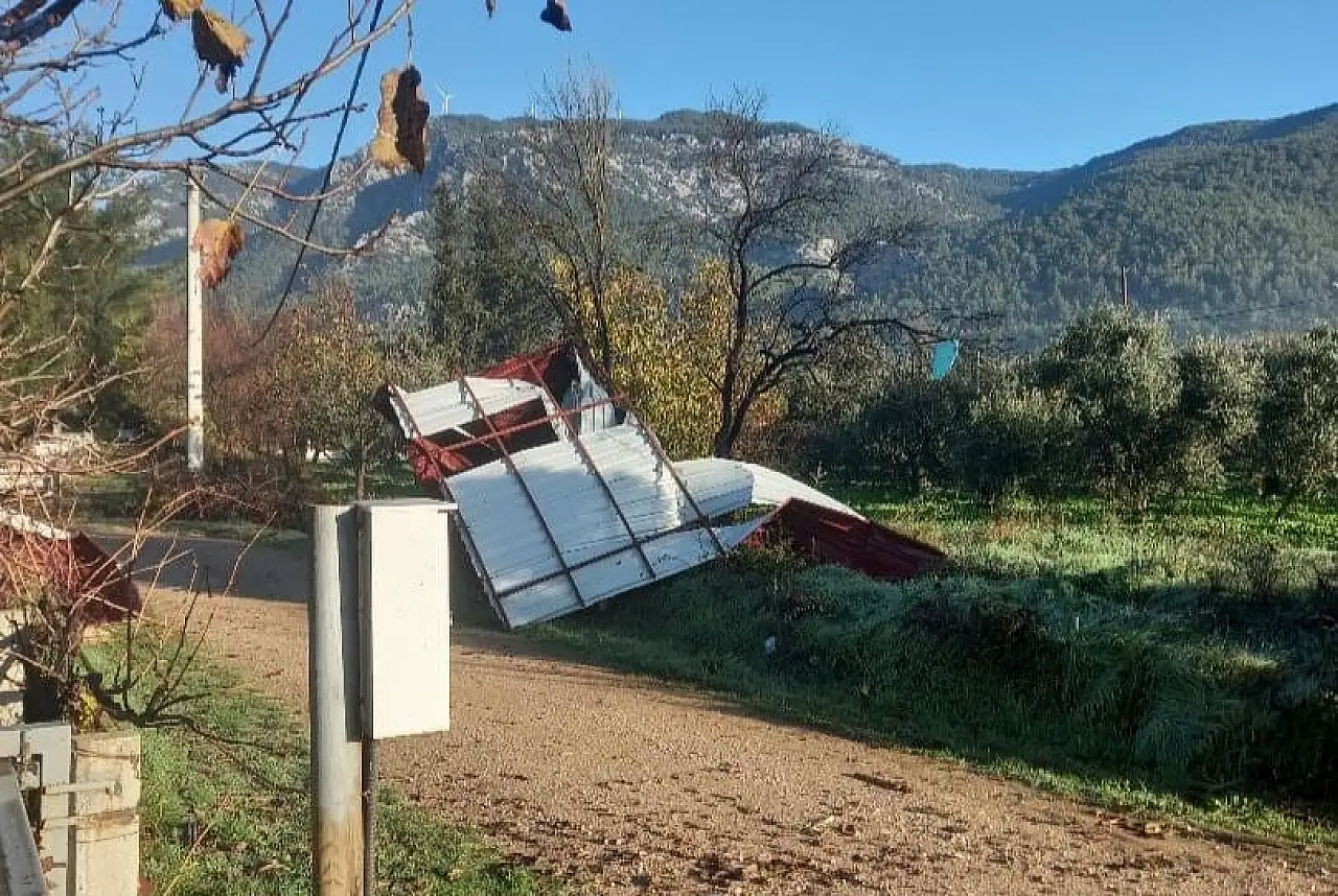 Muğla’nın Menteşe ilçesinde gece saatlerinde etkisini artıran fırtına, özellikle Yaraş Mahallesi’nin Orta Yaraş mevkiinde hayatı olumsuz etkiledi. Aniden şiddetlenen rüzgâr, bölgede bazı yapıların çatı ve dış cephelerinde hasara yol açtı.
