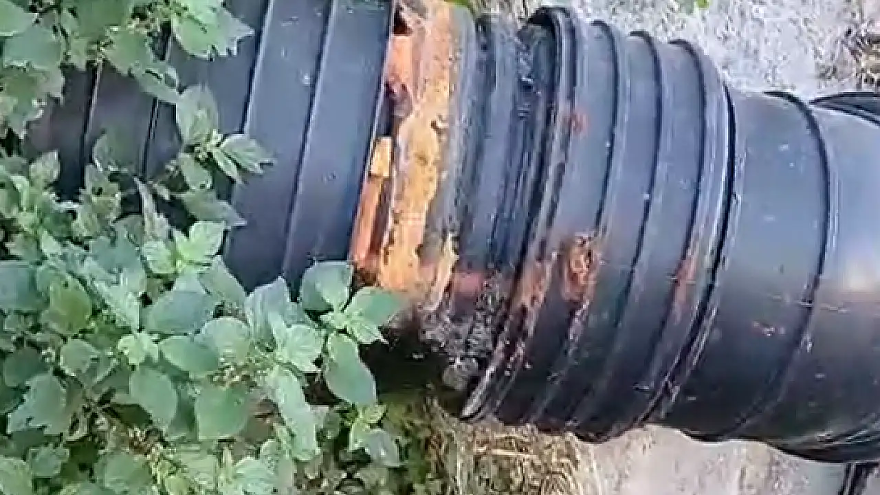 Turgutreis Akçalan Mahallesi 7765 Sokak'ta utandıran bir görüntü aylardır değişmiyor. Duvara asılı şekilde bırakılan kanalizasyon borusunun ek yerinden sızan pis sular, sokak boyunca akarak hem çevreyi hem mahalle sakinlerini zehirlemeye devam ediyor.