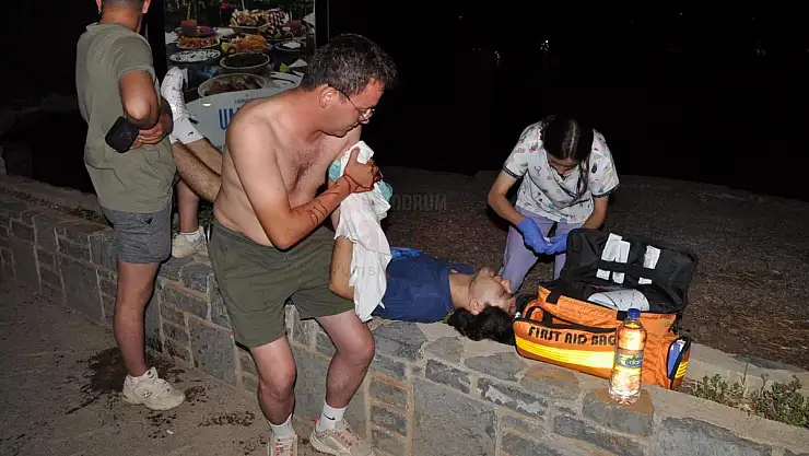 Yaralanan K.M.’ye ilk yardımı yanında bulunan arkadaşları yaptı. Arkadaşları yaralı K.M. için 112 çağrı merkezine ihbarda bulundu. İhbar üzerine olay yerine gelen ambulans ile K.M. Bodrum Devlet Hastanesi’ne kaldırılarak tedavi altına alındı. Polis olay yerinden kaçan saldırganın yakalanması için soruşturma başlattı.