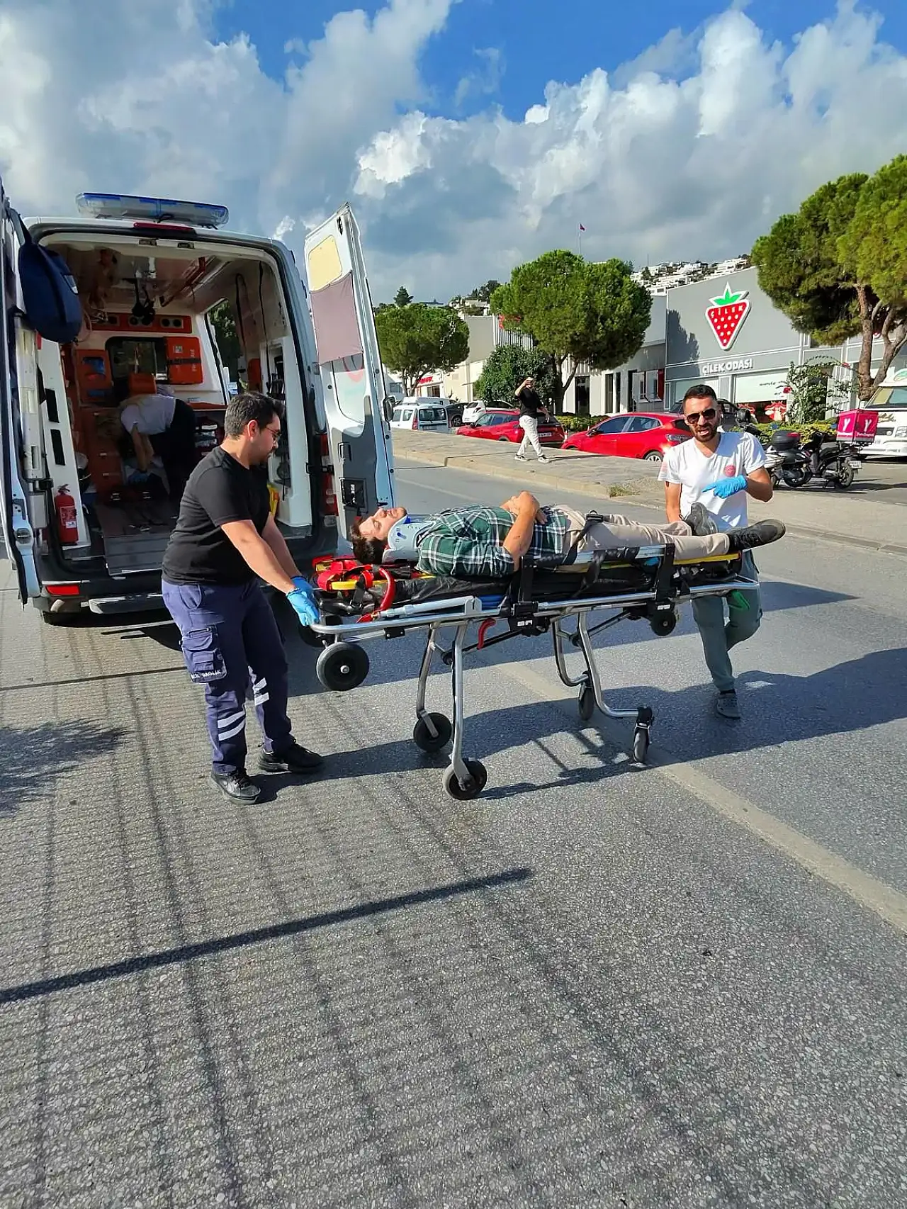 Çarpmanın etkisiyle motosiklet sürücüsü H.K. düşerek yaralandı. Olay yerine çağrılan 112 Acil Sağlık ekipleri, yaralıya ilk müdahaleyi yaptıktan sonra H.K.'yı Bodrum Devlet Hastanesi’ne kaldırdı.