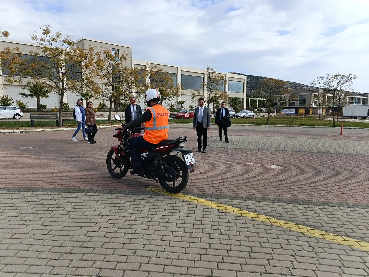 Sürücü adaylarının sınav süreçlerini yöneten komisyon üyelerinin yetkinliklerini artırmak ve standartları yükseltmek amacıyla düzenlenen program, teorik ve pratik olmak üzere iki aşamada gerçekleştirildi. Eğitimin teorik bölümü Menteşe Halk Eğitim Merkezi’nde verilirken, katılımcılara mevzuat, trafik kuralları ve iletişim teknikleri konularında bilgilendirmeler yapıldı.