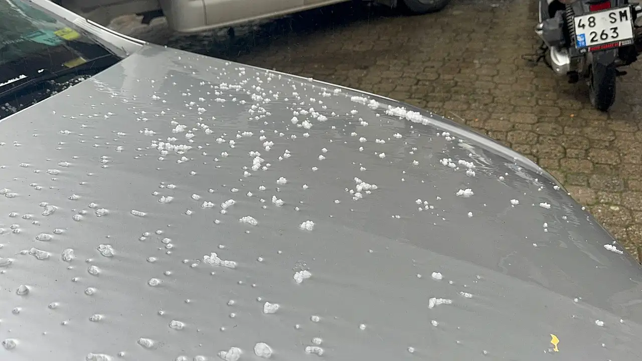 Kısa süreli dolu yağışı, ilçeyi adeta beyaza bürüdü. Özellikle kırsal mahallelerde yollar ve tepeler dolu nedeniyle tamamen beyaz bir görüntüye kavuşurken, park halindeki araçların üzeri de kar yağmış gibi doluyla kaplandı.