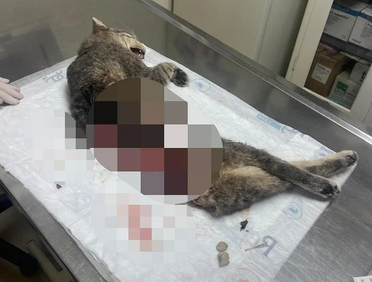 “Karın bölgesinin tamamı ile kuyruğunun tamamının, sırt derisi ve kas dokusu ile birlikte keskin bir cisim kullanılarak vücuttan ayrıldığı tespit edilmiştir. Kedinin bedeninde tilki, domuz, köpek gibi hayvanlardan kaynaklanabilecek herhangi bir iz bulunmamaktadır. Vücudun diğer bölgelerinde de boğuşma veya saldırı izi yoktur. Mevcut bulgular, olayın kötü niyetli kişi veya kişiler tarafından, kesici bir alet kullanılarak gerçekleştirildiği kanaatine varmamızı sağlamıştır.”
