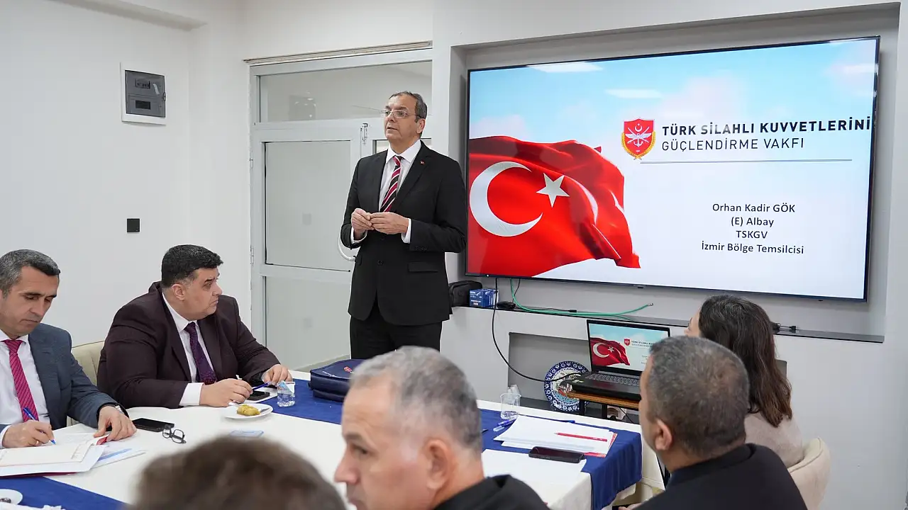 Toplantının dikkat çeken bir diğer bölümünde ise Türk Silahlı Kuvvetlerini Güçlendirme Vakfı İzmir Bölge Temsilcisi Emekli Albay Orhan Gök bir sunum gerçekleştirdi. Sunumda, vakfın faaliyetleri ve eğitim kurumlarıyla yapılabilecek iş birlikleri üzerine bilgilendirmeler yapıldı.