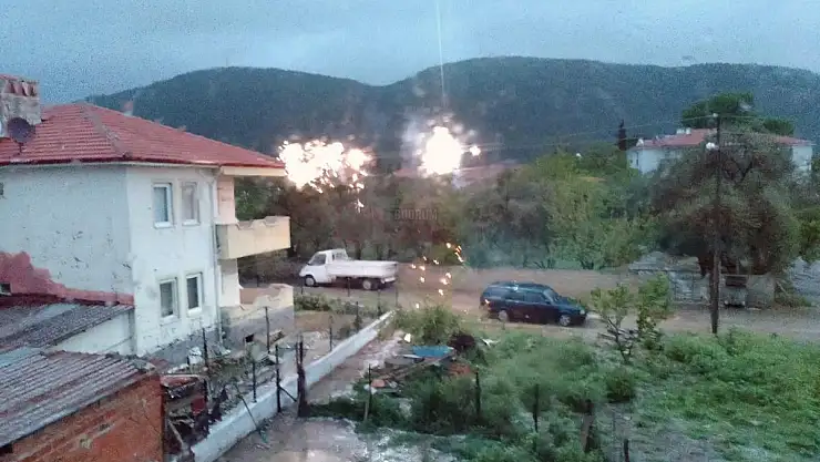BODRUM HABER - Muğla 'nın Ula ilçesinde sabah saatlerinde başlayan sağanak yağış ve fırtına sonrası evlerin ve araçların yakınından geçen enerji nakil hatları birbirine temas etmesi sonrası şiddetli patlamalar yaşandı.Olay, sabah saatlerinde Ula İlçesi Kö