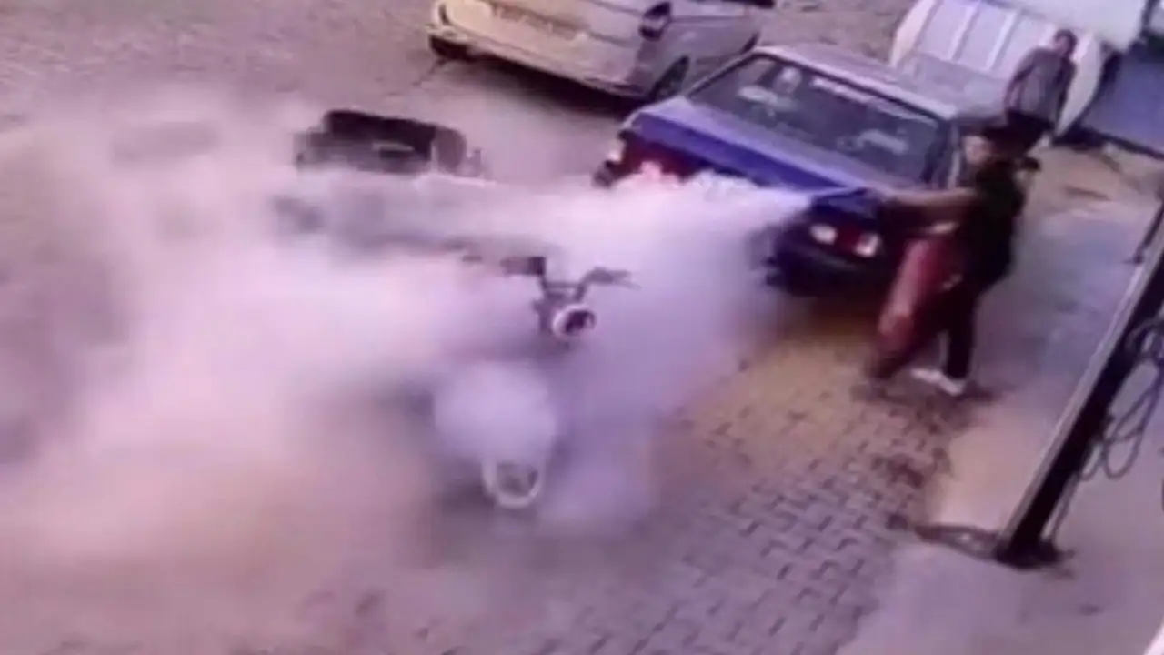 Patlamanın etkisiyle bisiklette yangın çıktı. Alevleri fark eden sürücü büyük bir panik yaşarken, çevredeki esnaf hemen yardıma koştu. Olayı gören B.C.G., isimli esnaf, yangın tüpüyle müdahale ederek alevleri kısa sürede söndürdü.