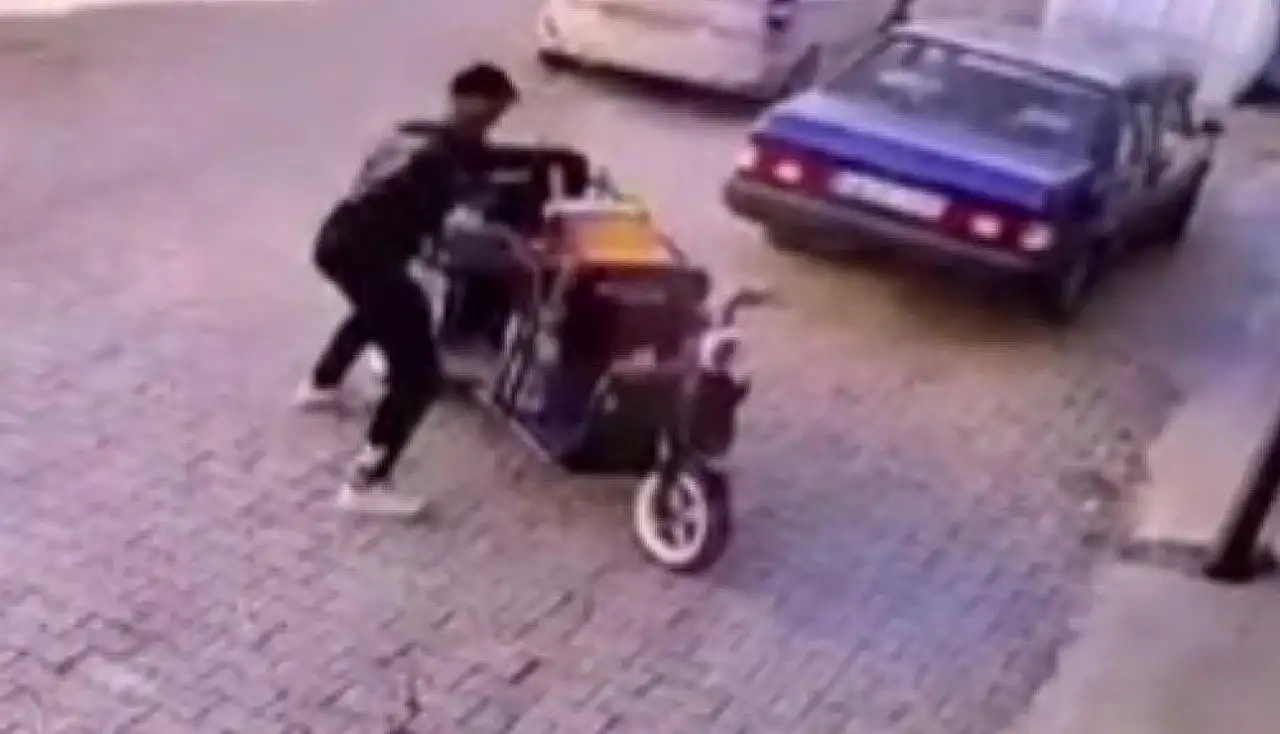Patlama sonucunda bisiklette maddi hasar meydana gelirken, şans eseri yaralanan olmadı. O anlar çevredeki güvenlik kameralarına saniye saniye yansıdı.