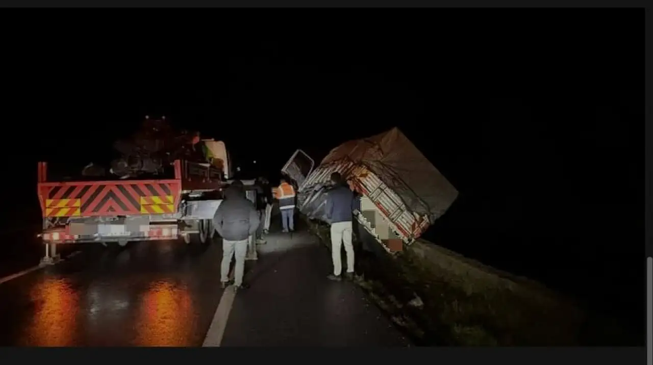 İhbar üzerine olay yerine polis ve Karayolları ekipleri sevk edildi. Güvenlik önlemleri kapsamında yol, tek şeritten kontrollü olarak trafiğe açık tutulurken, kamyonun düşme riskine karşı çevrede geniş güvenlik tedbirleri alındı. Ağır tonajlı aracın bulunduğu yerden kaldırılması için vinç çağrılarak çalışma başlatıldı.