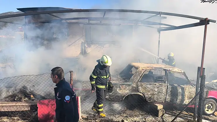 Bağ evinde çıkan yangın ekiplerin müdahalesiyle söndürülürken, ev ve park halindeki otomobil kullanılamaz hale geldi.