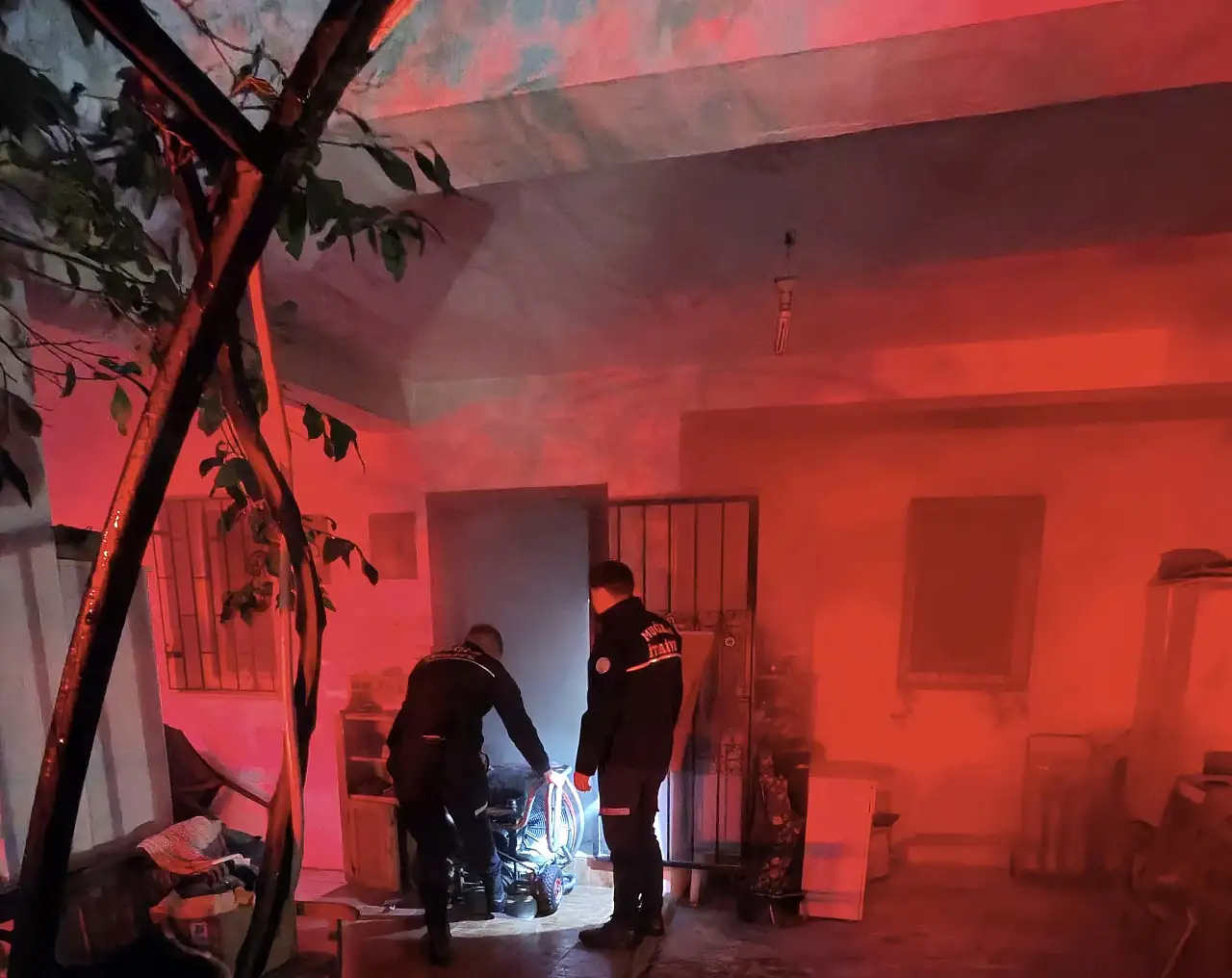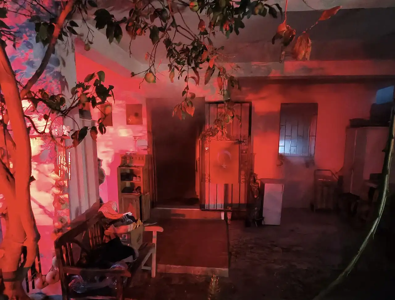 Yangın sonucu evde maddi hasar meydana gelirken, polis ekipleri olayla ilgili inceleme başlattı.