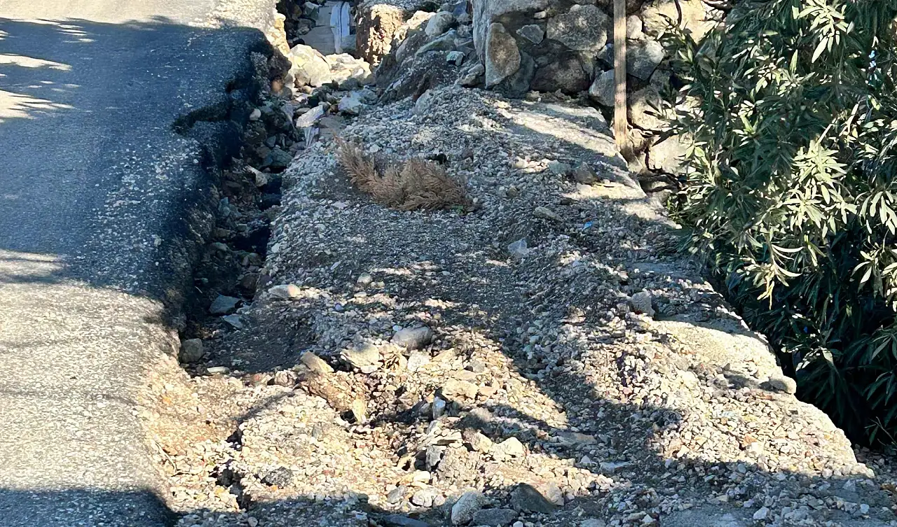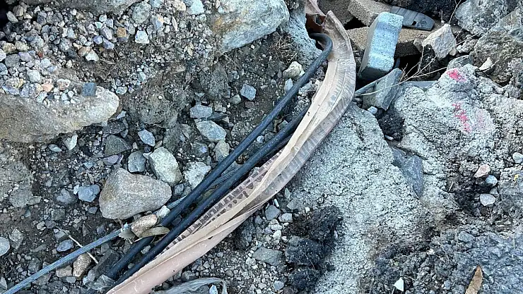 Yolun bir bölümünde yapılan altyapı çalışması sonrası kablolar açıkta bırakıldı. Altyapıyı hangi firmanın yaptığı netlik kazanmazken; elektrik hattı mı, internet altyapısı mı olduğu bilinmeyen kabloların yol üzerinde ve kazı alanında açık şekilde durduğu görülüyor. Son günlerde etkili olan yağışlarla birlikte yol zemininin daha da çöktüğü, çukurun derinleştiği ve kabloların iyice ortaya çıktığı dikkat çekiyor.