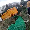 Otomobille çarpışan hafriyat kamyonu şarampole girip elektrik direğine çarptı.