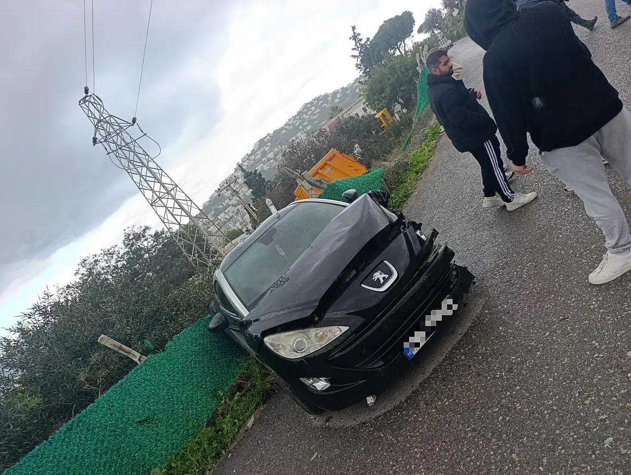 Peksimet ile Kadıkalesi arasındaki yolda sabah saatlerinde meydana gelen kazada hafriyat kamyonu, otomobille çarpıştıktan sonra kontrolden çıkarak şarampole yuvarlandı ve bir elektrik direğine çarparak durabildi.