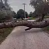 Fırtınanın etkisiyle Pınarlıbelen Mahallesi Karanlık mevkiinde bulunan bir çam ağacı yola devrildi. Devrilen ağaç nedeniyle yol geçici süreyle trafiğe kapandı.