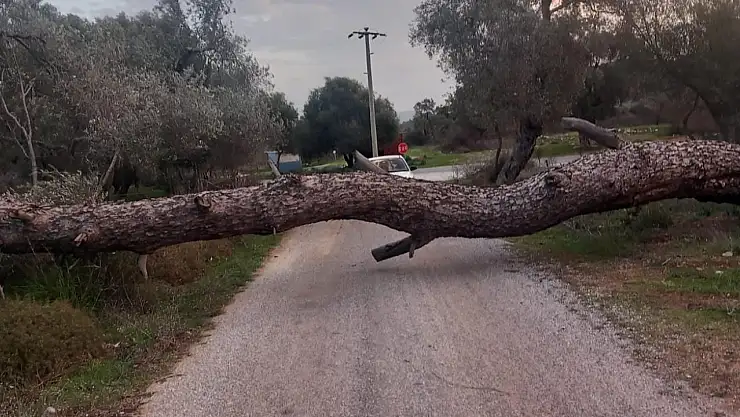 Fırtınanın etkili olduğu Bodrum'da devrilen ağaçlar nedeniyle bazı yollarda ulaşım geçici olarak aksadı.