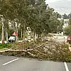 Bodrum'da fırtınalı havada devrilen bir ağaç, trafiği kapattı. Vatandaşlar araçlardan inerek ağacı yol kenarına çekti ve trafiğin bir bölümünü açtı.