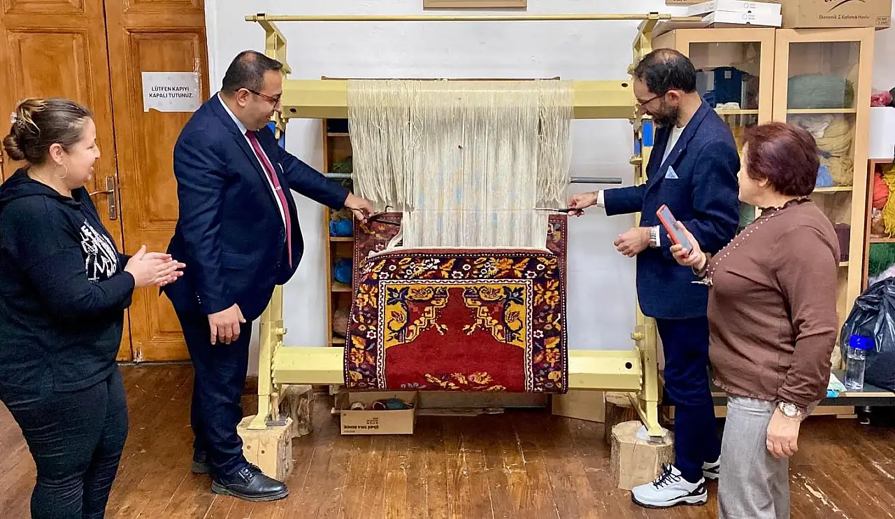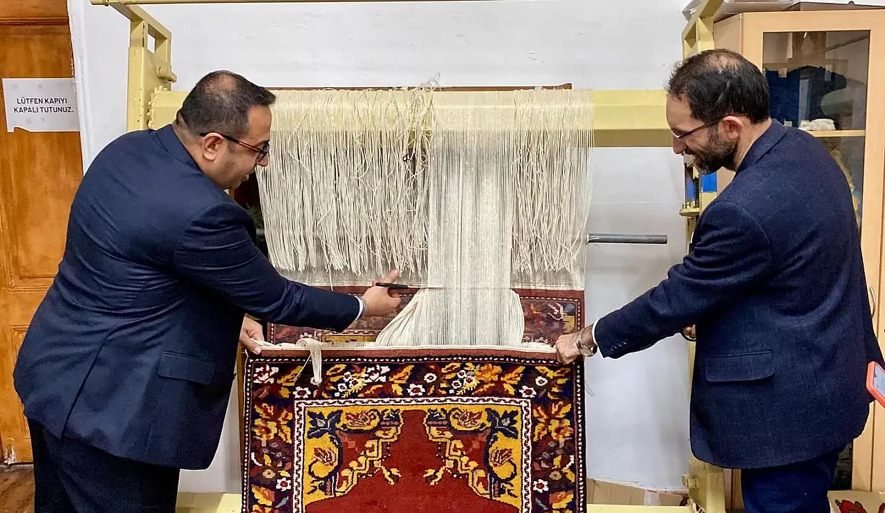 Ziyaretin en dikkat çeken bölümü halı dokuma atölyesinde gerçekleşti. Enstitü Müdürü Ahmet Karbukan ile birlikte atölyeleri gezen Keleş, el emeği göz nuru ile hazırlanan geleneksel motifli halının son ilmeğinin tamamlanmasının ardından kesim törenini gerçekleştirdi.