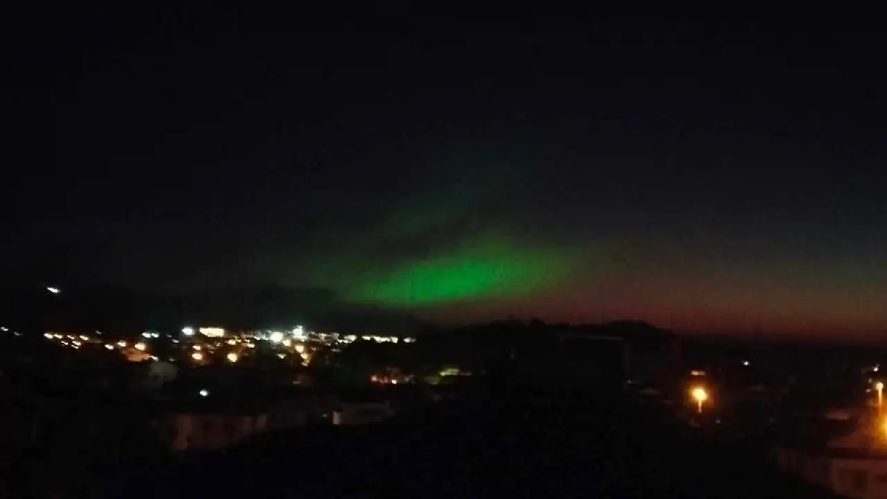 Akşam saatlerinde gökyüzünde beliren mor ve yeşil ışıklar vatandaşların ilgisini çekti. Uzmanlar, görüntülerin güçlü jeomanyetik fırtınanın etkisiyle oluşan kuzey ışıkları olabileceğini belirtiyor.