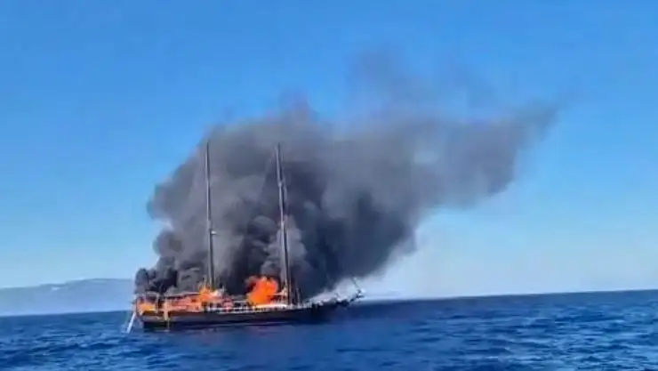 Muğla'nın Datça ilçesi Mersincik Koyu'ndan sabah erken saatlerde Bodrum Karaada Poyraz Koyu'na doğru seyir halinde olan Türk bayraklı 'MY LOVER' isimli ahşap gezi teknesinde, nedeni henüz belirlenemeyen bir yangın çıktı.