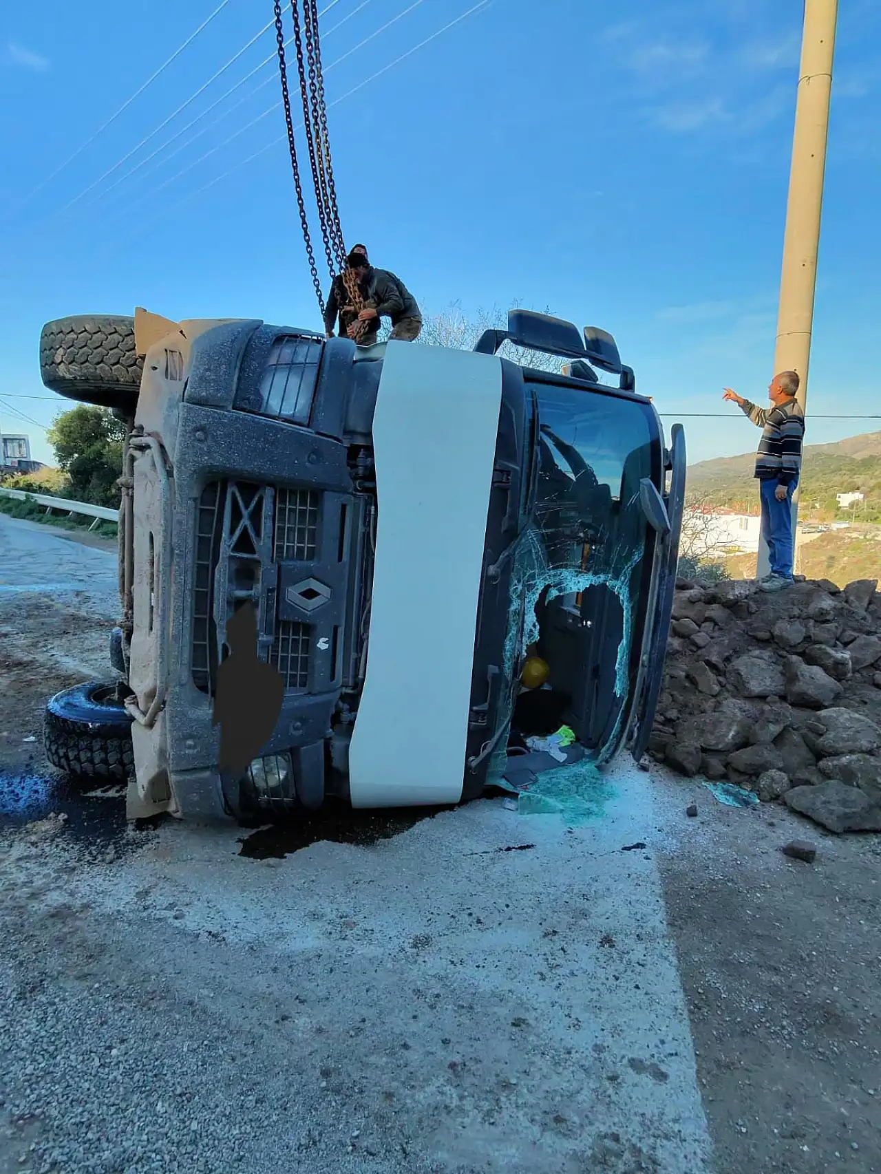 Bodrum'da yol kenarındaki çukura giren hafriyat kamyonunun devrilmesi sonucu meydana gelen kazada 1 kişi yaralandı. Kaza nedeniyle yol bir süre trafiğe kapandı.