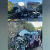 Edinilen bilgilere göre, seyir halindeki TIR, karşı yönden gelen otomobilin şeridine girerek çarpışmaya neden oldu. Çarpmanın etkisiyle TIR bariyerlere çarparken, otomobil ise yol kenarına savruldu.