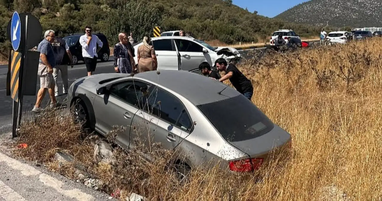 Edinilen bilgilere göre, Milas yönünde ilerleyen 01 BCR 173 plakalı araç ile dönüş cebinden yola çıkarak aynı istikamete yönelmek isteyen 34 TV 7861 plakalı otomobil çarpıştı.