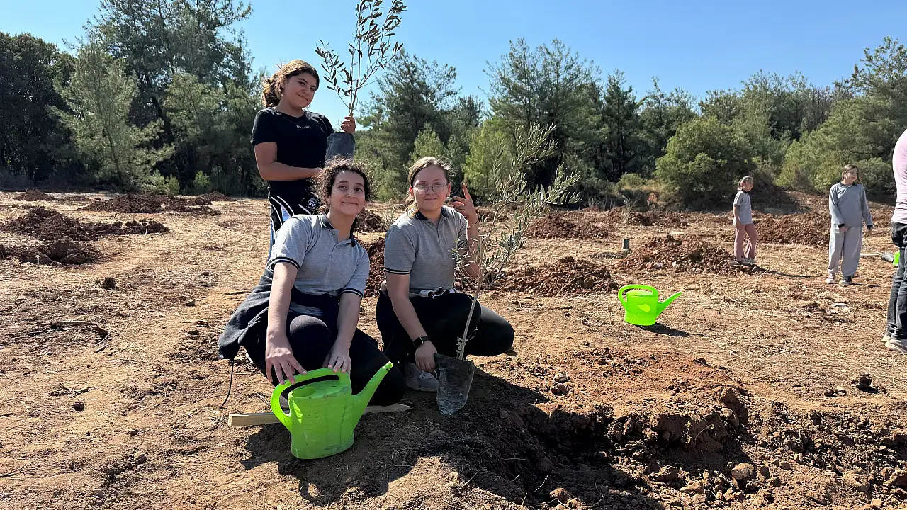 İlkokul öğrencileri 300 zeytin fidanını toprakla buluşturdu !