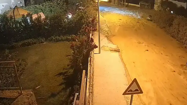 Bodrum'un Yahşi Mahallesi Kargı Caddesi'nde meydana gelen ana su hattı patlağına ilişkin güvenlik kamerası görüntüleri ortaya çıktı.