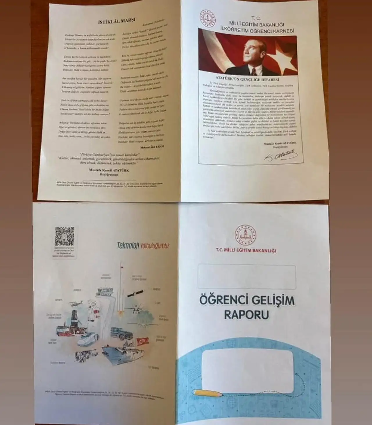 Açıklamada, Mustafa Kemal Atatürk’ün bu ulusun Başöğretmeni olduğu vurgulanırken, İstiklal Marşı’nın ise Türkiye Cumhuriyeti’nin varoluşunun ve bağımsızlık mücadelesinin en güçlü simgesi olduğu belirtildi. Karnelerden hem Atatürk’ün fotoğrafının hem de İstiklal Marşı’nın kaldırılmasının kabul edilemez olduğu dile getirildi.
