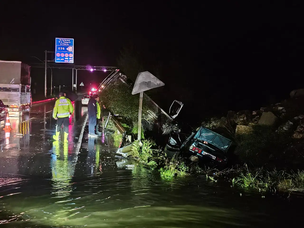 Kaynar Kavşağı'nda yağış nedeniyle kontrolden çıkan otomobilin şarampole girmesiyle başlayan kazada, yardıma duran araca kamyonetin çarpması sonucu 3 kişi yaralandı.