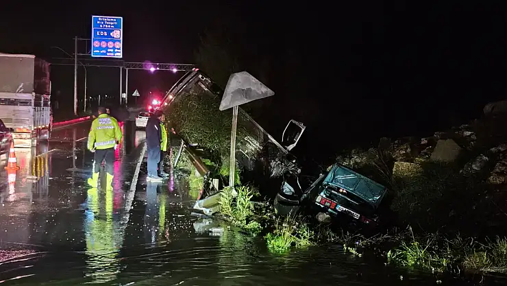 Akşam saatlerinde Bodrum–Milas istikametinde seyir halinde olan bir otomobil, Kaynar Kavşağı’na hızlı girmesi ve yağış nedeniyle yolda biriken suya kapılması sonucu kontrolden çıkarak çelik bariyerlere çarpıp şarampole girdi.